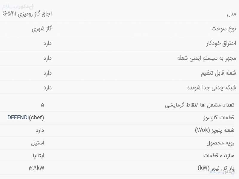 مدل اجاق گاز: استیل پنج شعله| نوع قطعات: ایتالیایی| طول اجاق: 88 سانتی متر