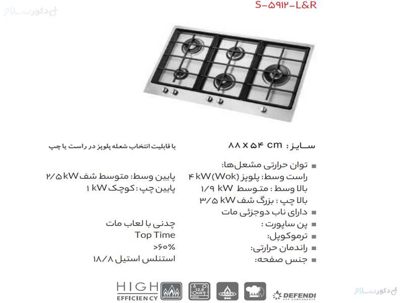 اجاق گاز رومیزی پنج شعله مدل S-5912 – L&Rاستیل البرز